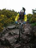 Ca commence donc par une sortie 'vers la vallée de la vère', à partir de point d'Ouilly. Bruno ne verra pas grand chose de la sortie, car dès le premier chemin, Bruno explose son dérailleur proshift, en passant un petit gué. On n'a pas compris ce qui s'est passé (ah les mystères de la mécanique vtt !!!), mais ça lui a valu le droit de nous attendre au café !!!