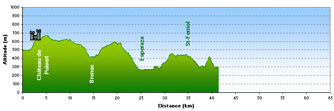 Retour à Quillan par les circuits FFC, en passant par St Ferriol. Impossible, même avec le GPS, de trouver le chemin pour descendre de St Ferriol ! Bizarre ce circuit FFC : la dernière côte au dessus de Quillan est là pour nous achever ! !