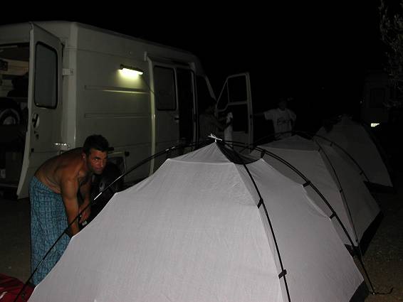 Jean-Yves se couche et se relèvera pour mettre le double toit.
