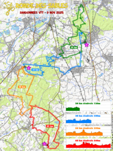 Distances randonnées VTT : 20, 35, 50 et 65 km